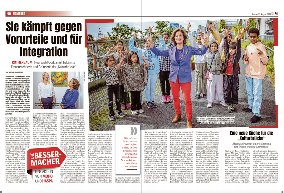 Presse · 29. August 2025 „Man muss sich kennenlernen, um Vorurteile abzubauen“ Hourvash Pourkian in der Hamburger Morgenpost Zur Online-Version tagPlaceholderTags: